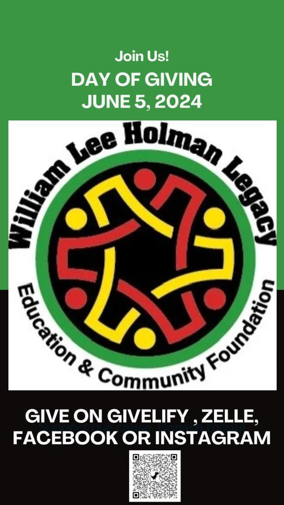 Our Day of Giving is an annual event that we will hold on June 5th to support our foundation’s efforts and honor the birthday of the late William Lee Holman. We ask that you mark your calendars to join us again next year. We will continue to have additional ways you can support, join and become involved in our foundation.